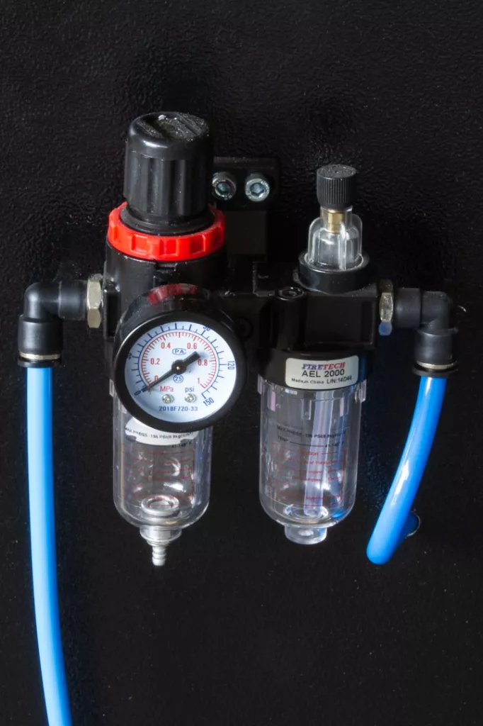 Maszyna wyposażona jest gotową instalacje mgły olejowej do chłodzenia piły tnącej. Zbiornik na chłodziwo nie jest częścią zestawu i pozostaje on do montażu po stronie klienta.