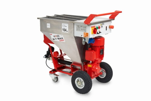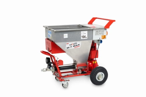 Agregat M-7 Max 230V jest mobilnym, cichym, a zarazem kompaktowym agregatem o zasilaniu jednofazowym 230V z płynną regulacją obrotów silnika oraz wbudowanym czujnikiem ciśnienia zaprawy. Kosz agregatu wykonany z szlachetnej stali nierdzewnej INOX co stanowi 100% odporności na korozję.