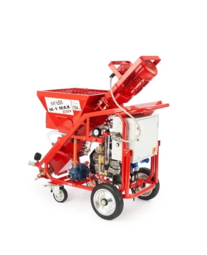 Agregat tynkarsko-szpachlarski M-1 MAX 230V jest przeznaczony do podawania mechanicznego zapraw o uziarnieniu do 3 mm przystosowanych do podawania mechanicznego według zaleceń producentów takich jak: