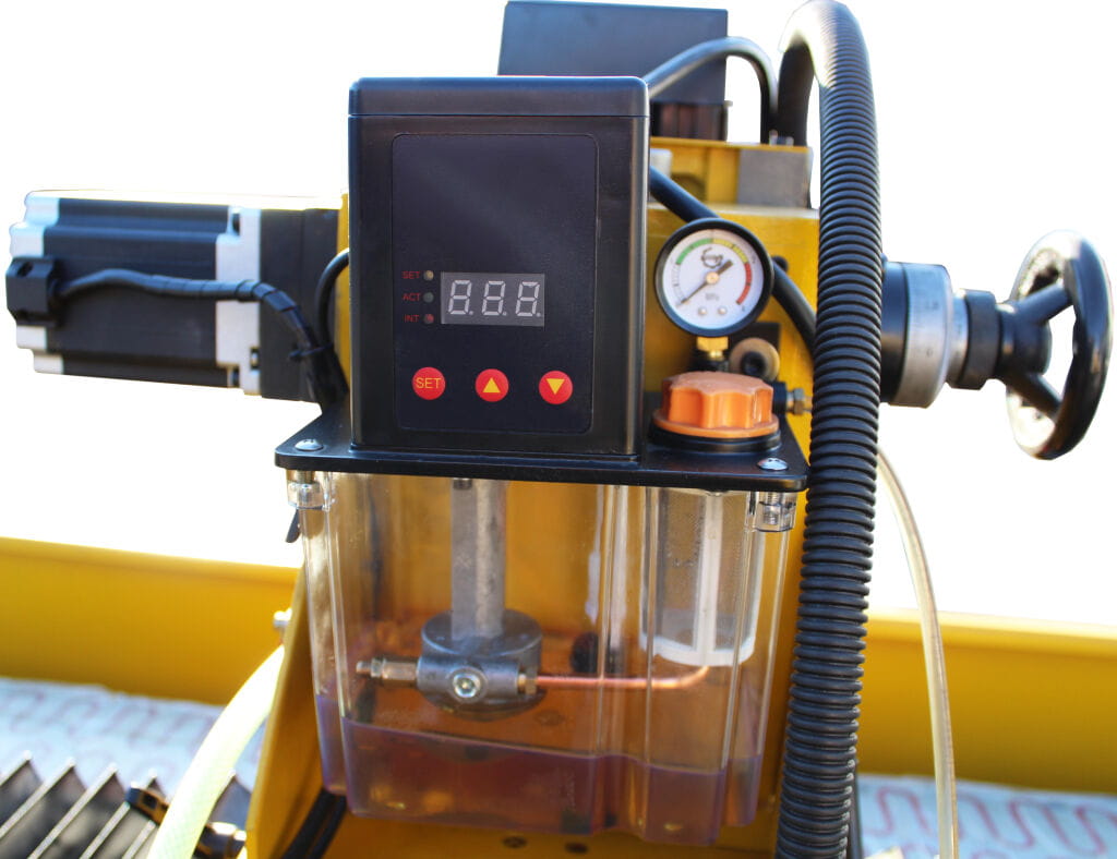 - Centralne smarowanie – automatyczne i równomierne dozowanie oleju do prowadnic i wózków.