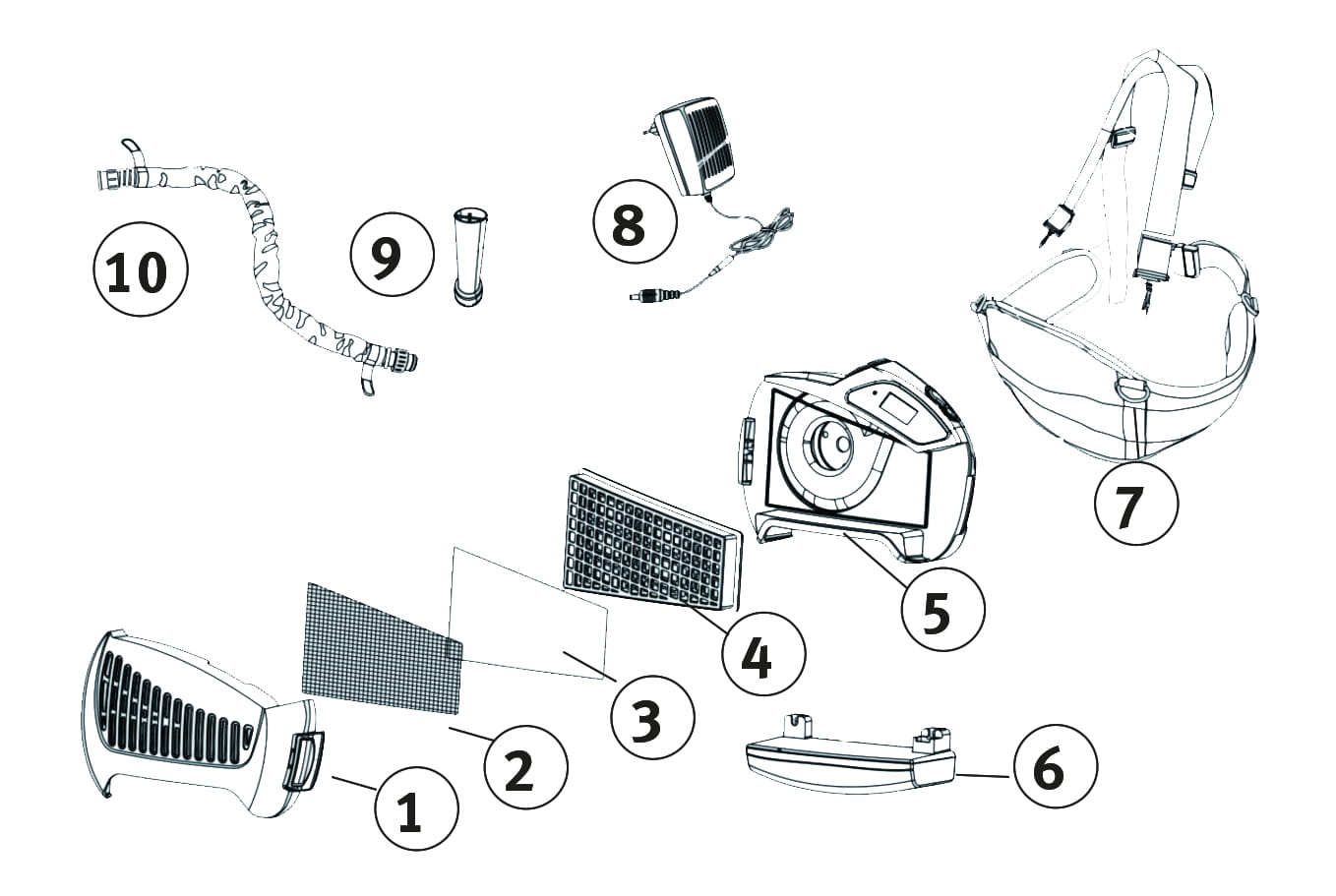 - Wyjaśnienie dotyczące wagi: Urządzenie, akumulator, uchwyt, wąż