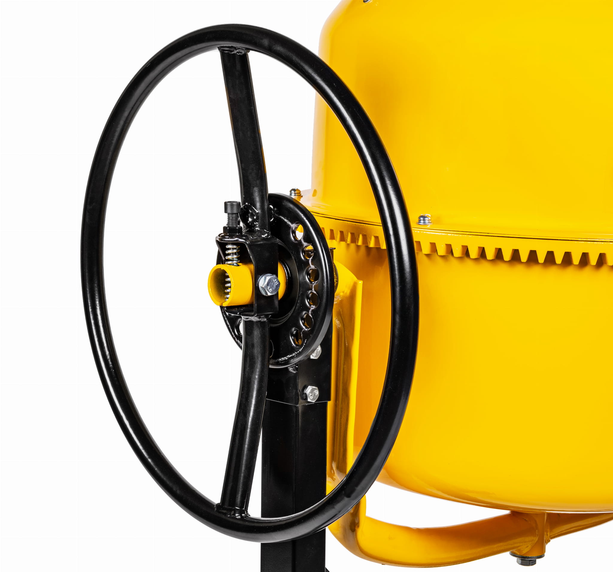 Całkowita pojemność bębna wynosi 120l, pojemność robocza jest niższa i wynosi około 105l. Przechył bębna odbywa się w łatwy sposób za pomocą koła z tarczą regulacyjną.