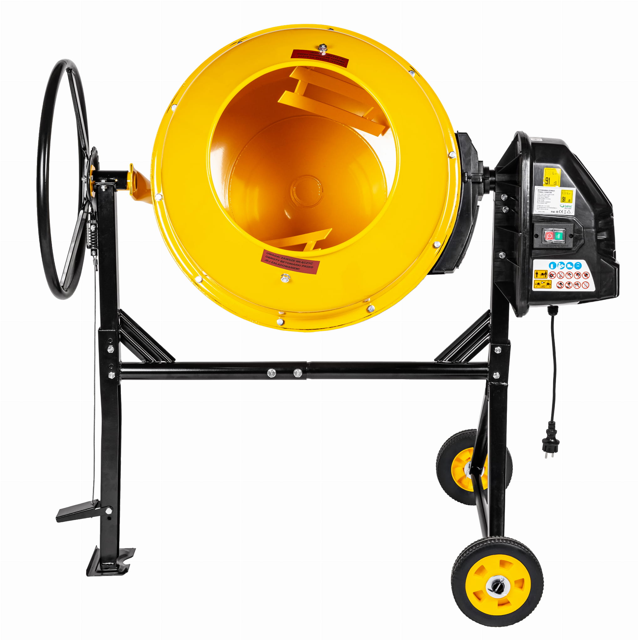 Całkowita pojemność bębna wynosi 160l, pojemność robocza jest niższa i wynosi około 145l. Przechył bębna odbywa się w łatwy sposób za pomocą koła z tarczą regulacyjną.|