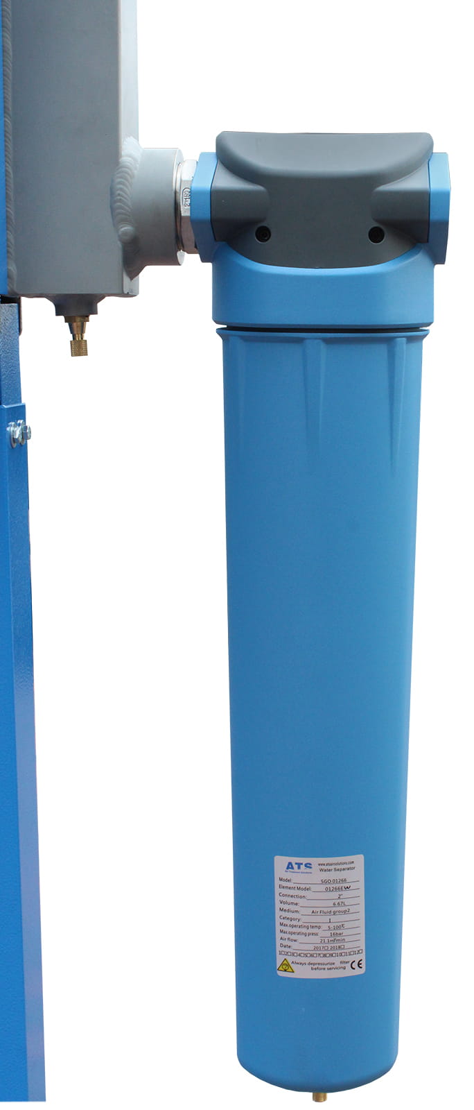 Zadaniem chłodnicy wtórnej jest wstępne schłodzenie gorącego powietrza wychodzącego ze sprężarki do temperatury +34°C (max do 66°C). Wskutek schłodzenia sprężonego powietrza następuje skroplenie znacznej części zawartej w nim wody. Separator cyklonowy zamontowany bezpośrednio za chłodnicą umożliwia wytrącenie kondensatu ze sprężonego powietrza.