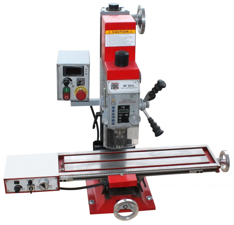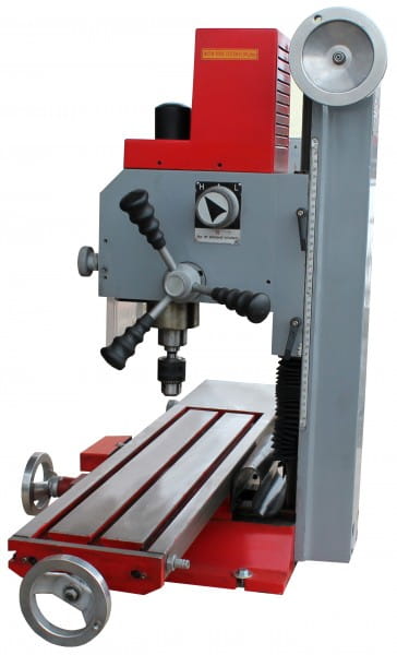 Stół krzyżowy w rozmiarze XL (700x180mm), zmienna regulacja prędkości obrotowej z cyfrowym wyświetlaczem, cyfrowa informacja o głębokości wiercenia z funkcją bazowania, obroty w lewą stronę i w prawą stronę w wyposażeniu standardowym, prowadnice stołu krzyżowego i głowicy wiertarskiej o przekroju w kształcie jaskółczego ogona, głowica frezowa przekładni obracana bezstopniowo, co rozszerza możliwości zastosowań, dodatkowe koło ręczne umożliwiające dosuw przy frezowaniu, dźwignia trójramienna umożliwiająca dosuw przy wierceniu, stół krzyżowy wysokiej jakości z podziałką i ogranicznikami, cokół z odlewu zwiększający stabilność, idealna maszyna dla warsztatów szkolnych, mechaników precyzyjnych i majsterkowiczów.