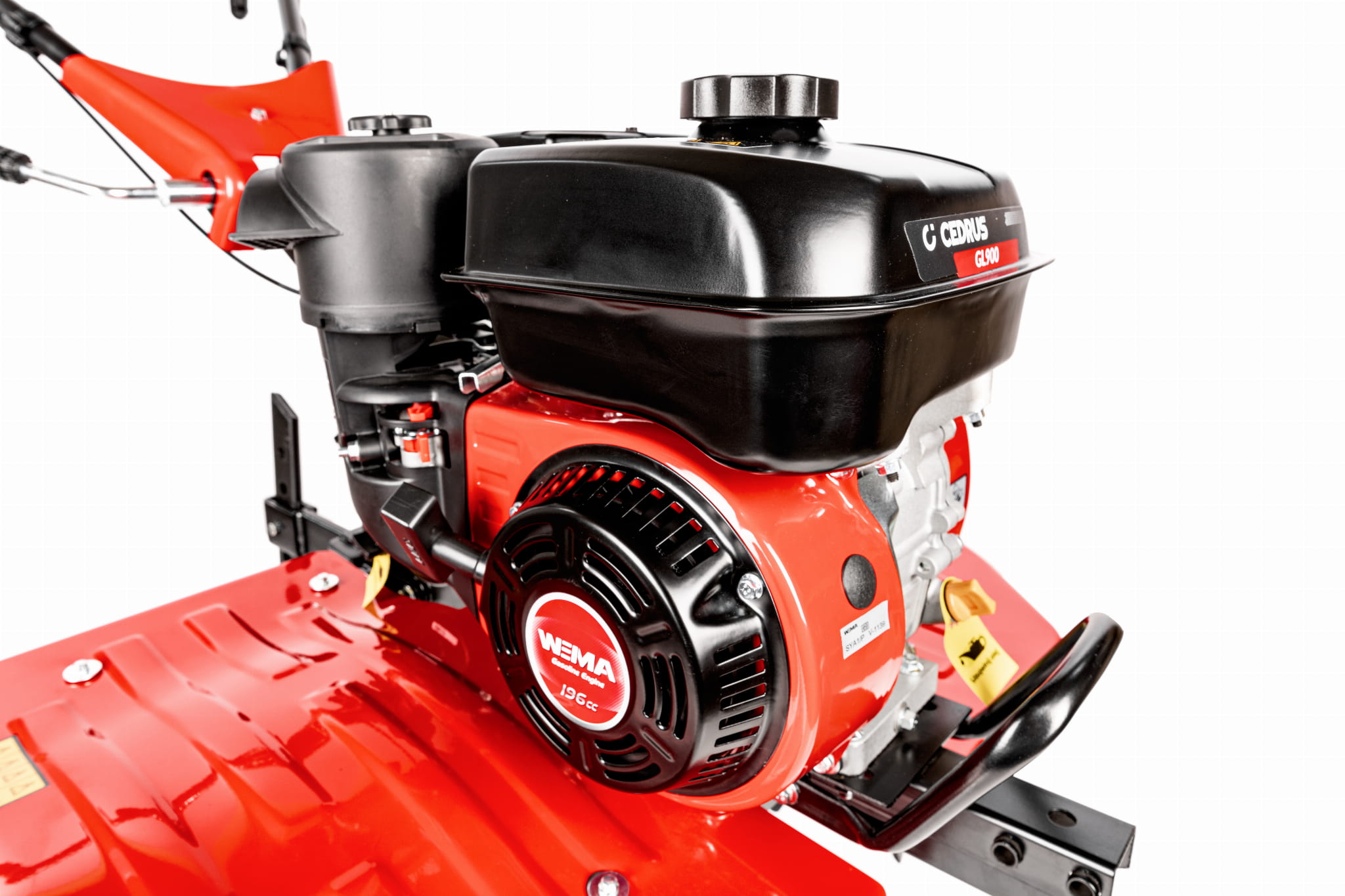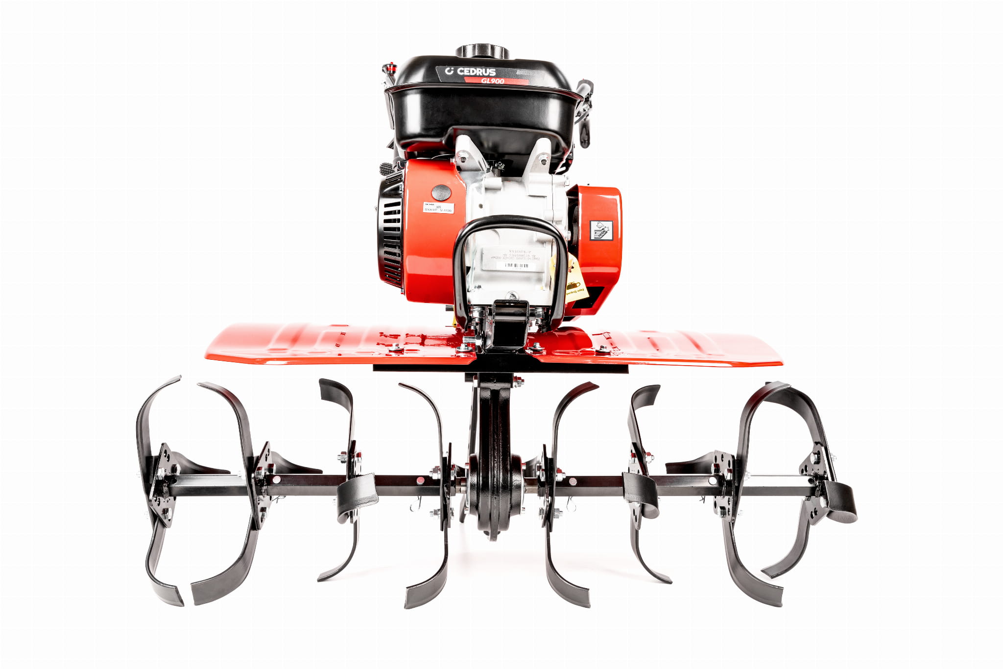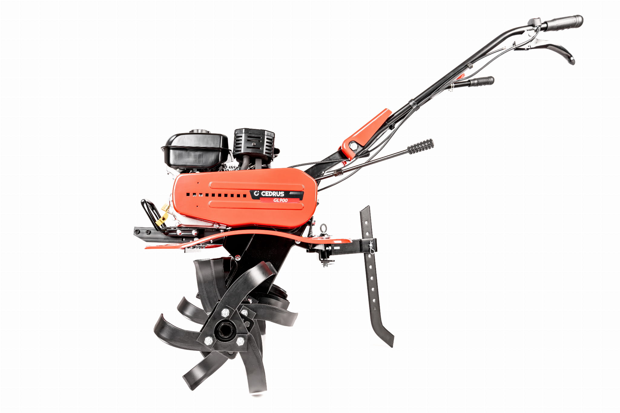 Glebogryzarka spalinowa Cedrus, model GL900, z silnikiem Weima WM168FB/P to zaawansowane narzędzie, które zapewnia wysoką wydajność i niezawodność przy pracach związanych z przygotowaniem i uprawą gleby. Jest idealna do użytku w ogrodach, na działkach oraz w mniejszych gospodarstwach. Posiada biegi: 2 do przodu i 1 wsteczny, co ułatwia manewrowanie i dopasowanie do warunków terenowych. Glebogryzarka oferuje głębokość roboczą od 150 do 300 mm, co pozwala na skuteczną uprawę gleby na różnych poziomach. Szerokość robocza w zakresie 800-1200 mm umożliwia efektywne i szybkie przygotowanie większych powierzchni. Maksymalna moc silnika 4.3 kW przy 3600 obr./min gwarantuje odpowiednią siłę do pracy w trudnych warunkach.