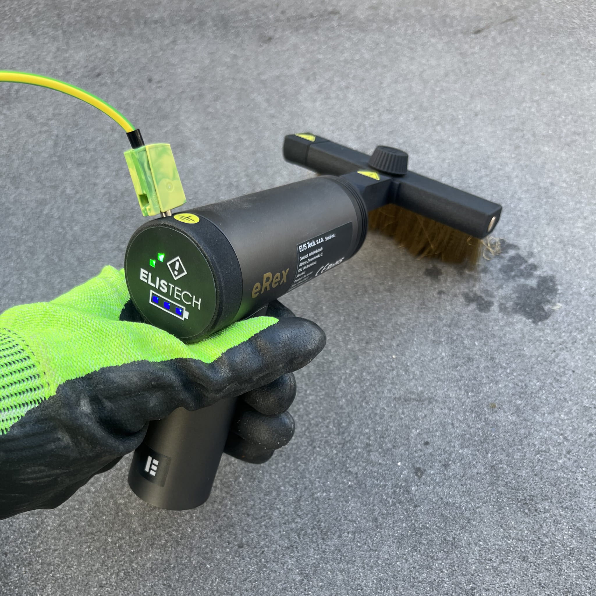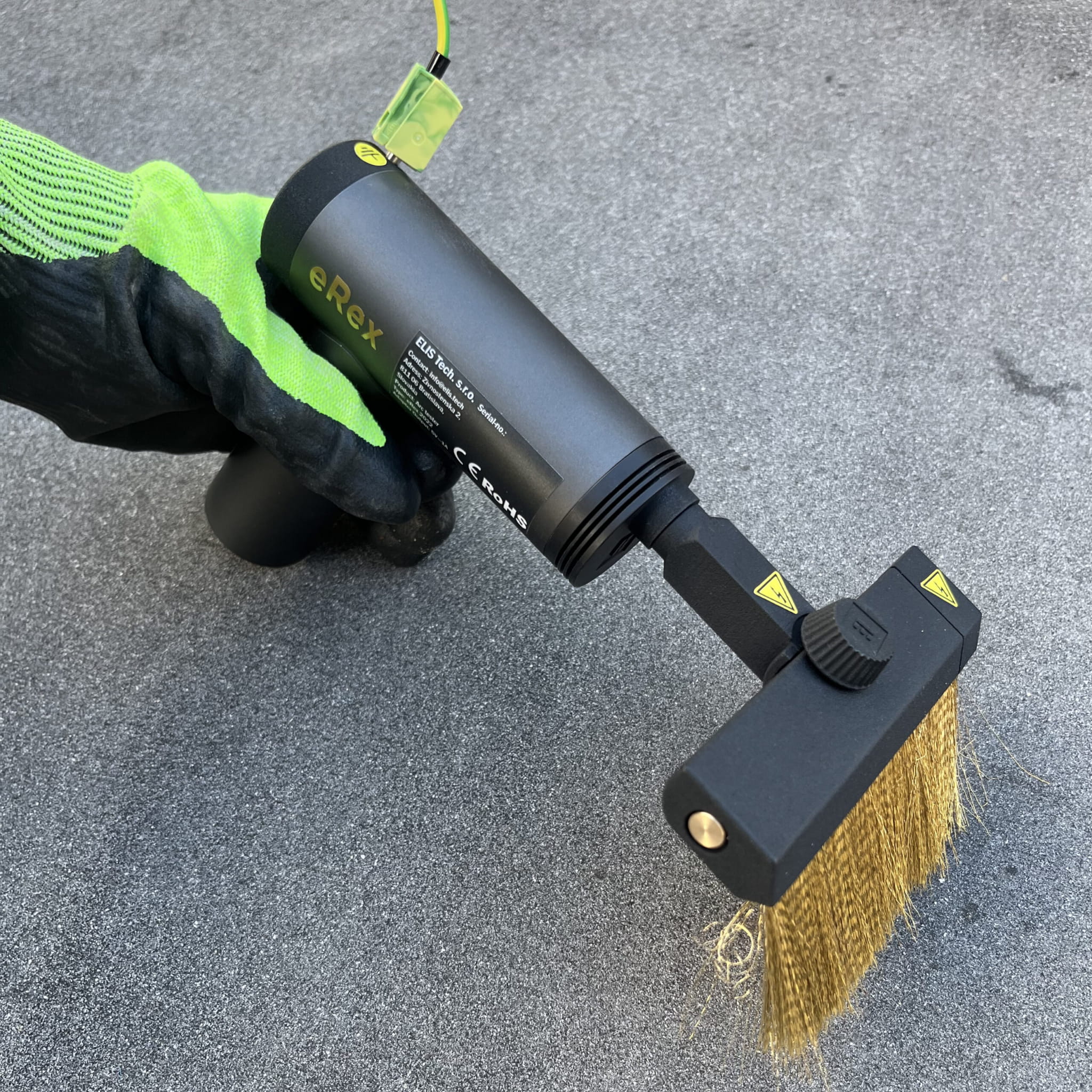eRex to kompaktowy iskrownik akumulatorowy do wykrywania i lokalizowania przebić oraz nieszczelności połączeń folii, geomembran i cienkich płyt z tworzyw sztucznych (do gr. 5 mm) PVC, TPO, HDPE, LDPE, bitumu, gumy i innych nieprzewodzących materiałów na budowach i w warsztatach. Jest to niezastąpione narzędzie do doraźnego sprawdzania powłoki hydroizolacyjnej dachu lub zbiornika po wszelkiego rodzaju pracach związanych z obróbką detali (narożniki, przepusty, połączenia typu T, montaż paneli solarnych itp.).