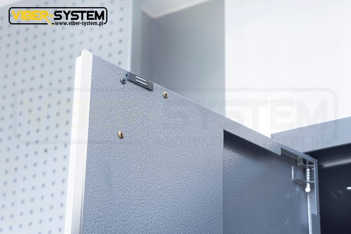- Modułowość: Szafa jest częścią zestawu mebli warsztatowych Viber-System (Opcja 1 i Opcja 2), co umożliwia jej bezproblemową integrację z pozostałymi elementami. Możesz także rozbudować system o dodatkowe szafki i półki, dostosowując go do swoich potrzeb.