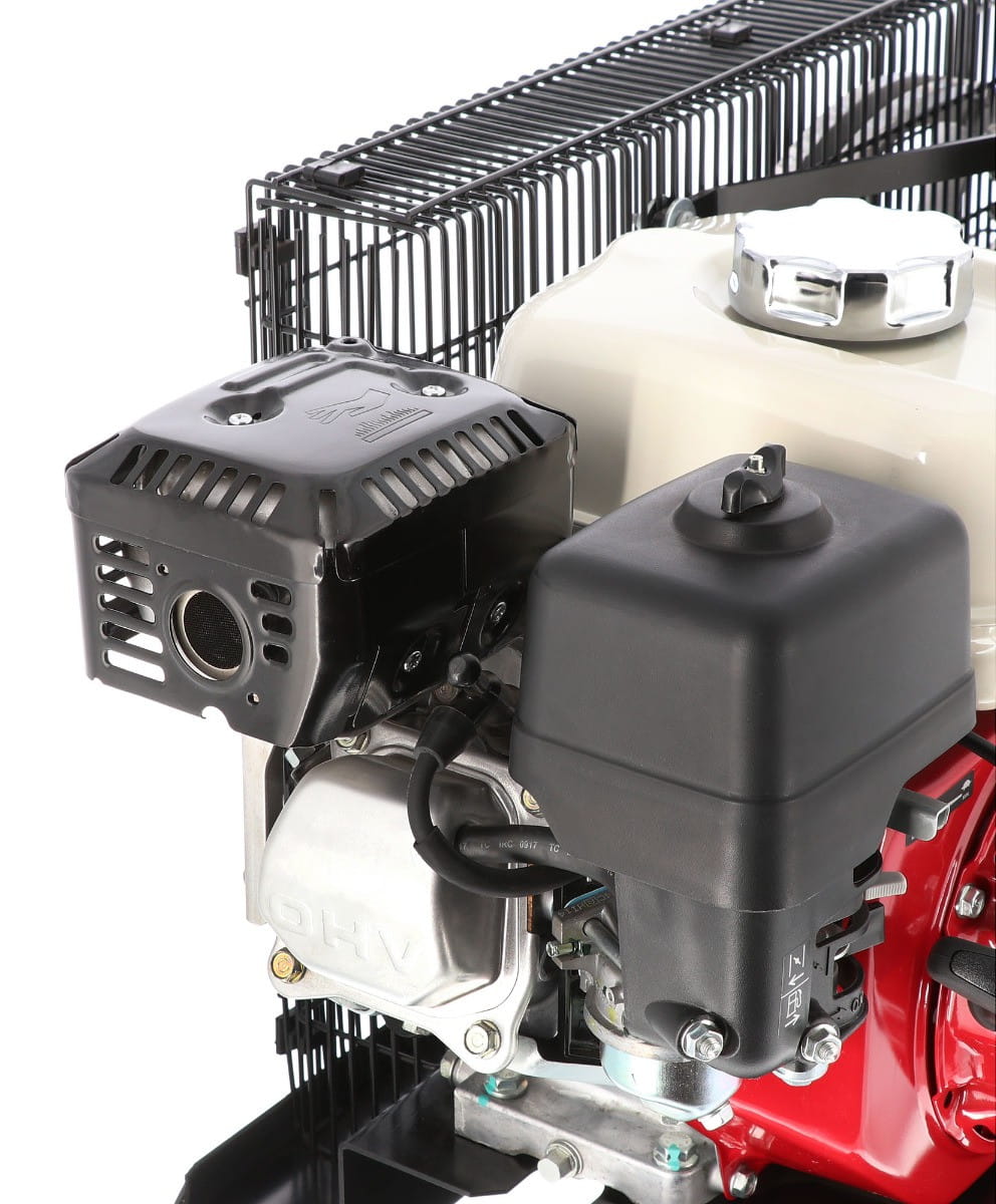 - Silnik Honda GP160: Czterosuwowy silnik benzynowy o mocy 4,8 KM (3,6 kW), wyposażony w system automatycznej dekompresji, co ułatwia rozruch. Konstrukcja OHV (zawory w głowicy) optymalizuje spalanie i minimalizuje zużycie paliwa, zapewniając niezawodną i wydajną pracę nawet w trudnych warunkach.