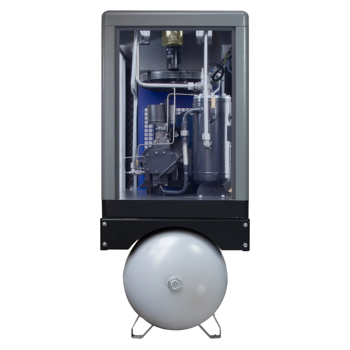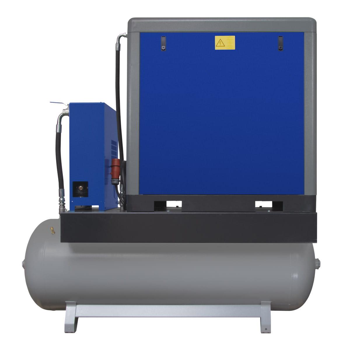 - Zintegrowany osuszacz i zbiornik powietrza – Osuszacz powietrza oraz zbiornik o pojemności 500 litrów gwarantują wysoką jakość powietrza i stabilne ciśnienie robocze, chroniąc narzędzia i urządzenia przed uszkodzeniami spowodowanymi wilgocią oraz zapewniając długotrwałą niezawodność.