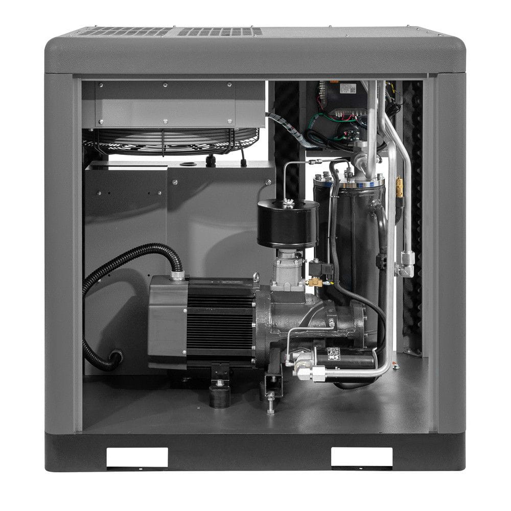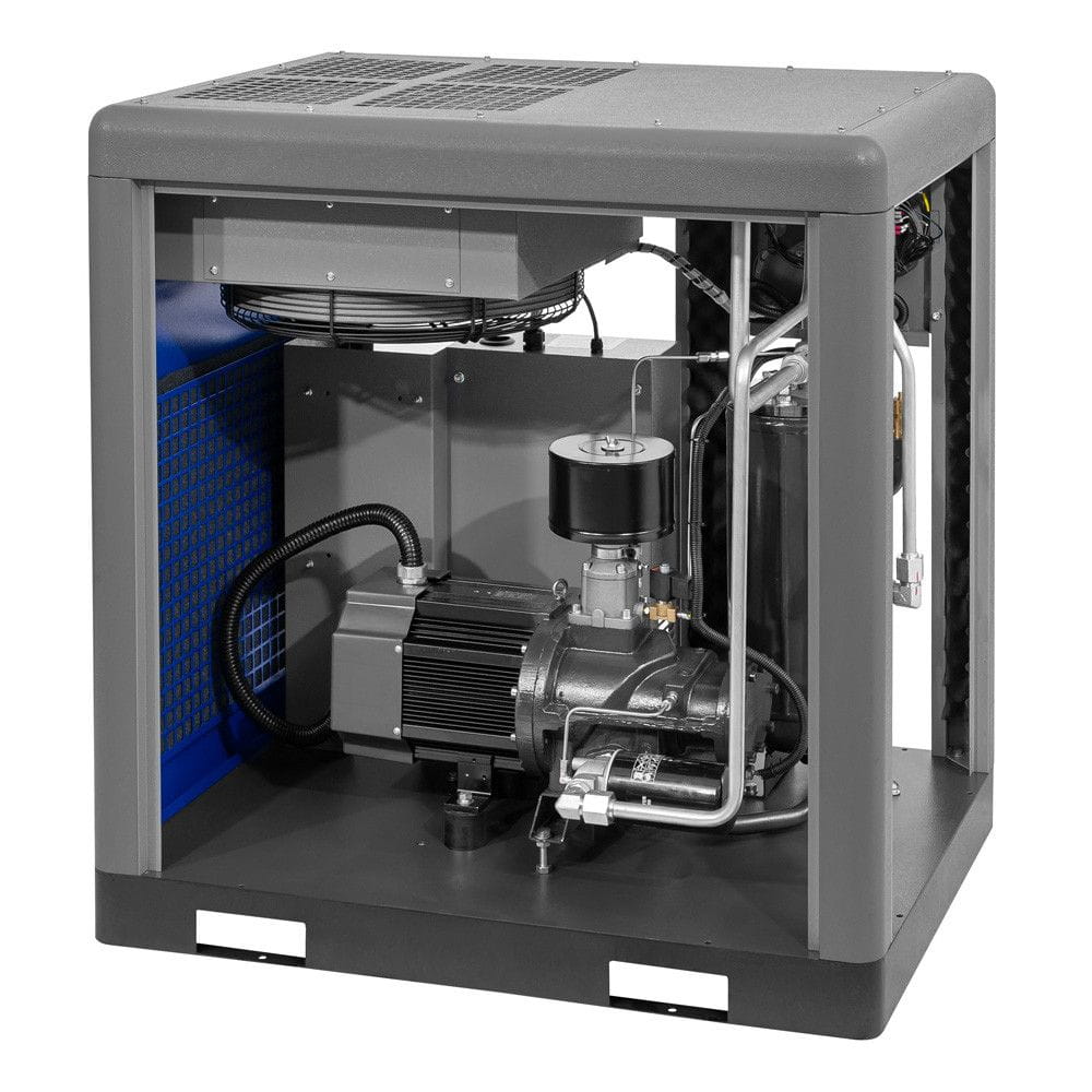 Kompresor APS 20 IVR X jest wyposażony w silnik synchroniczny z magnesami stałymi, który charakteryzuje się wysoką efektywnością energetyczną oraz wyjątkową trwałością. Silnik klasy IE3 w połączeniu z inwerterem pozwala na precyzyjne dostosowanie parametrów pracy, co znacząco zmniejsza koszty eksploatacji. Konstrukcja silnika zmniejsza zapotrzebowanie na konserwację i zwiększa niezawodność urządzenia.
