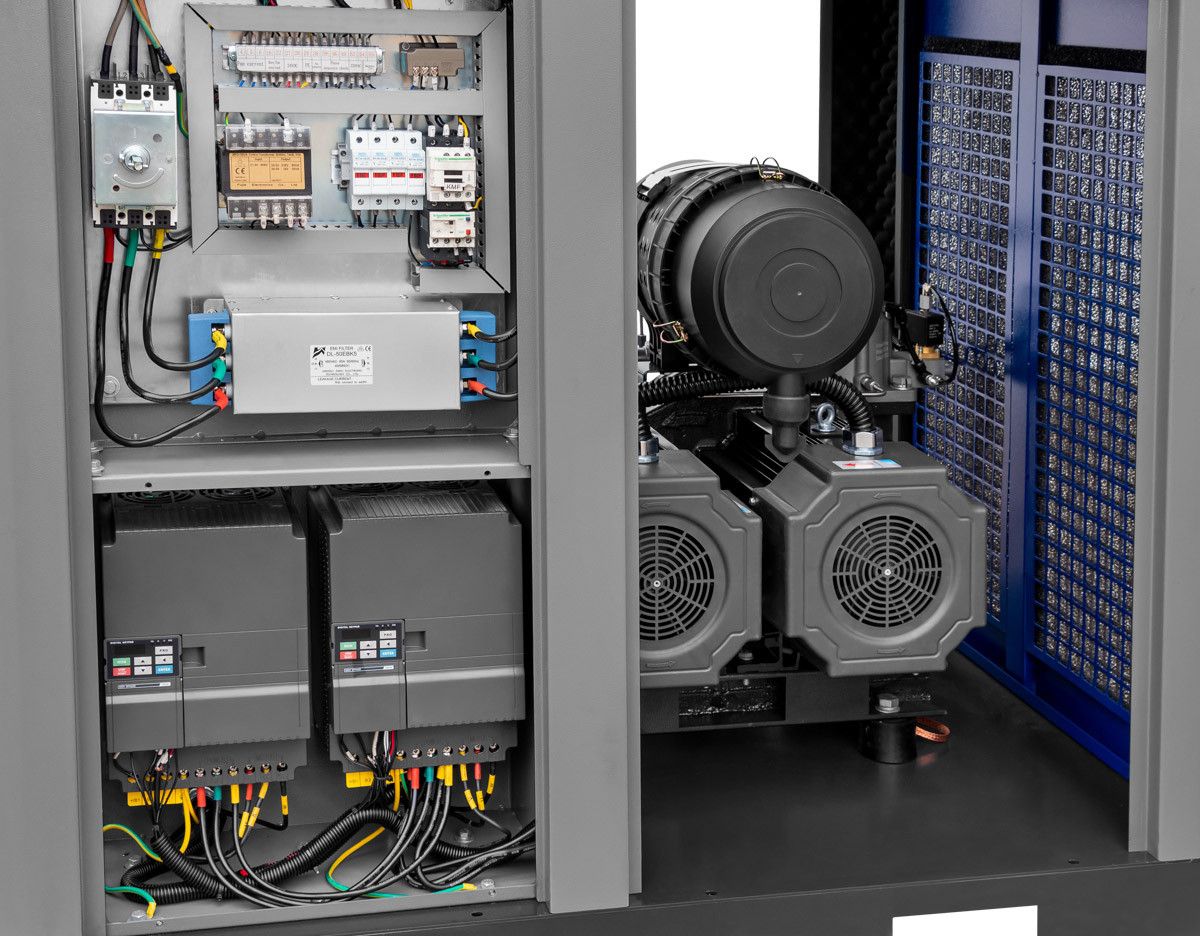 APS 75 2IVR X to zaawansowany technologicznie kompresor śrubowy, zaprojektowany z myślą o maksymalnej efektywności i niezawodności w wymagających środowiskach przemysłowych. Wyposażony w dwustopniowy blok śrubowy oraz technologię zmiennoobrotową 2IVR, kompresor ten oferuje wyższą wydajność energetyczną i wyjątkową oszczędność energii. Generuje przepływ powietrza w zakresie 4250-11460 l/min przy maksymalnym ciśnieniu roboczym 10 bar, co sprawia, że jest idealnym rozwiązaniem dla zakładów przemysłowych o dużym zapotrzebowaniu na sprężone powietrze. Moc silnika wynosi 75 KM (52 kW), co zapewnia stabilną i wydajną pracę.