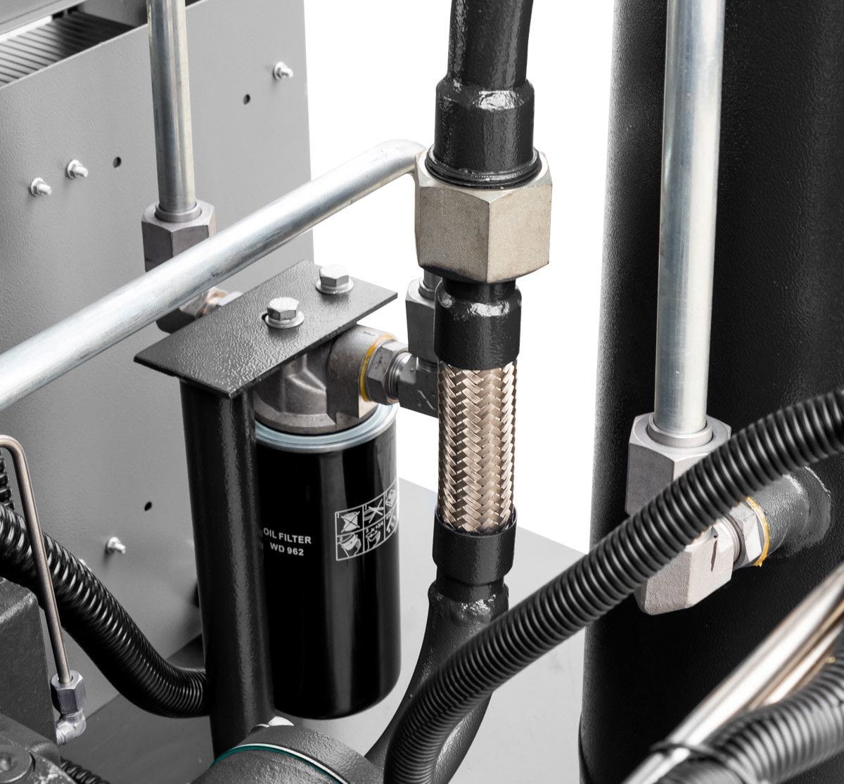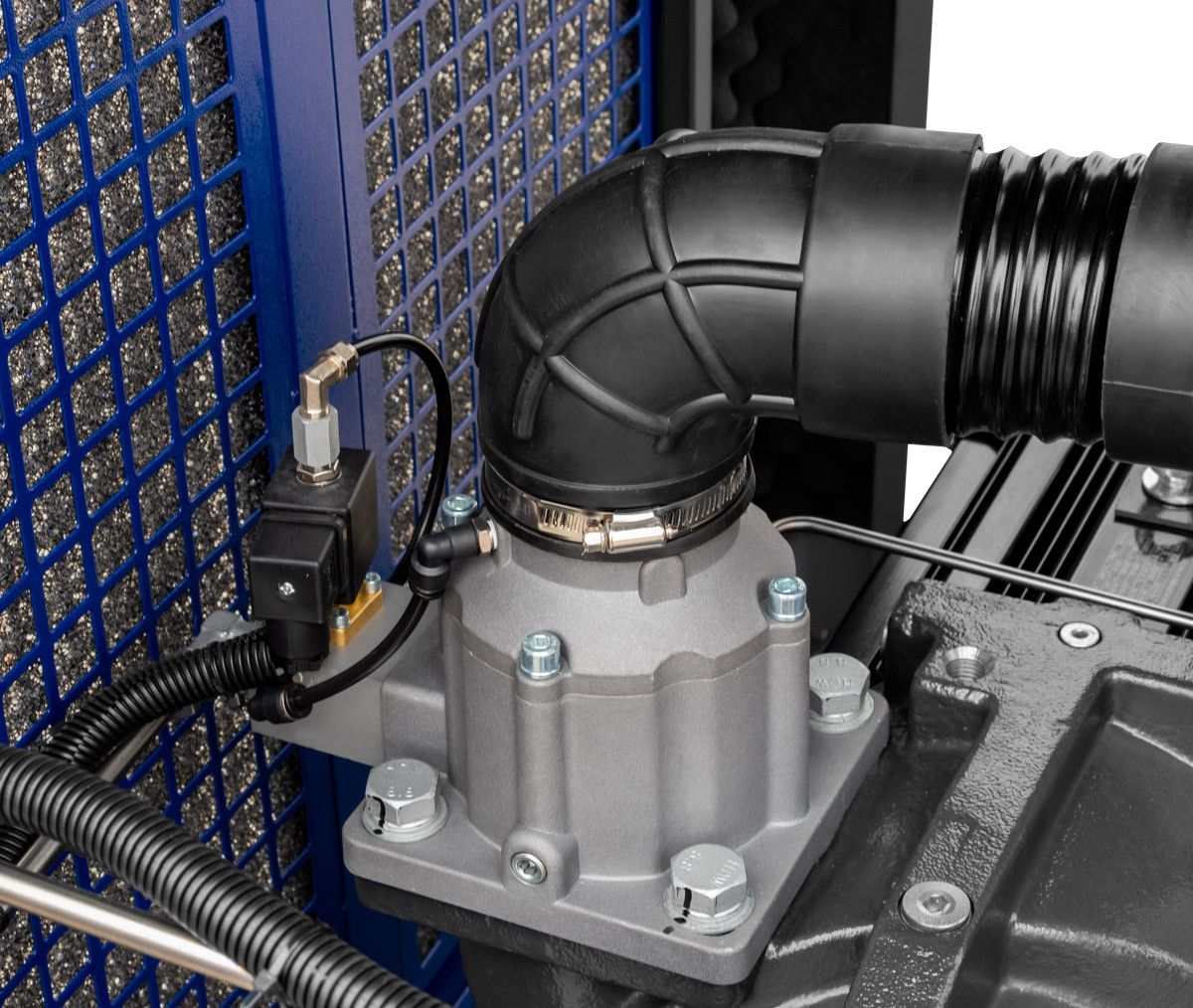 System chłodzenia w kompresorze APS 75 2IVR X został zoptymalizowany pod kątem efektywnego odprowadzania ciepła. Chłodnice dwukanałowe umieszczone bezpośrednio przy wylotach skutecznie odprowadzają ciepło, co zapobiega przegrzewaniu się urządzenia. Inteligentnie sterowany wentylator uruchamia się tylko w niezbędnych momentach, co dodatkowo oszczędza energię i zapewnia optymalną temperaturę pracy. System chłodzenia został zaprojektowany, aby zapewnić maksymalną wydajność nawet w trudnych warunkach przemysłowych.