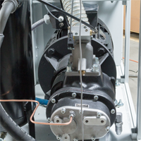 Wyjątkowo efektywna, dwufunkcyjna chłodnica zapewnia optymalne warunki pracy w najcięższych warunkach pracy kompresora. Pozwala osiągnąć niską temperaturę wyjściową powietrza do sieci pneumatycznej. System chłodzenia doposażony został w innowacyjny wentylator turbinowy zwiększający efektywność układu, zarazem obniżając poziom hałasu. Do połączenia chłodnicy z modułem zastosowano przewody hydrauliczne wysokotemperaturowe.