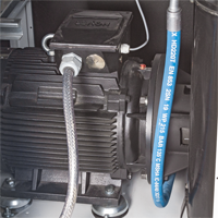 Wyjątkowo efektywna, dwufunkcyjna chłodnica zapewnia optymalne warunki pracy w najcięższych warunkach pracy kompresora. Pozwala osiągnąć niską temperaturę wyjściową powietrza do sieci pneumatycznej. System chłodzenia doposażony został w innowacyjny wentylator turbinowy zwiększający efektywność układu, zarazem obniżając poziom hałasu. Do połączenia chłodnicy z modułem zastosowano przewody hydrauliczne wysokotemperaturowe.