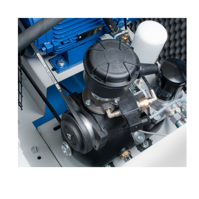 - Niezawodny układ przeniesienia napędu z silnika elektrycznego za pomocą przekładni pasowej zapewnia stabilną pracę kompresora.