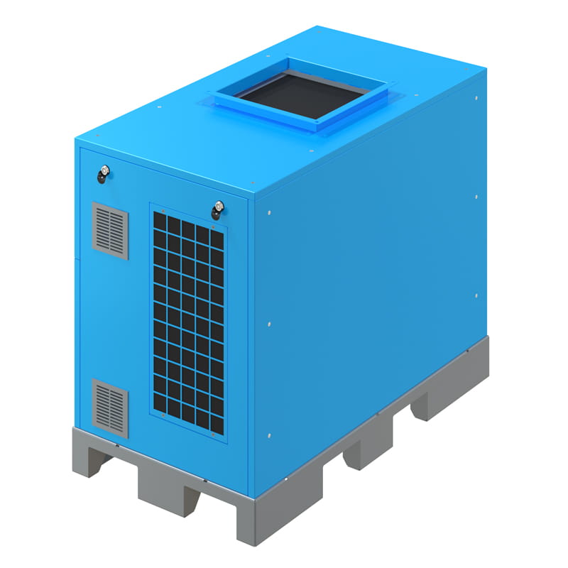 Wyjątkowo efektywna, dwu-funkcyjna chłodnica zapewniająca optymalne warunki pracy w najcięższych warunkach pracy kompresora. Pozwala osiągnąć niską temperaturę wyjściową powietrza do sieci pneumatycznej. Wyposażona jest w wentylator, sterowany poprzez panel kontrolny w zależności od obciążenia kompresora. Do połączenia chłodnicy z modułem zastosowano przewody hydrauliczne wysokotemperaturowe.
