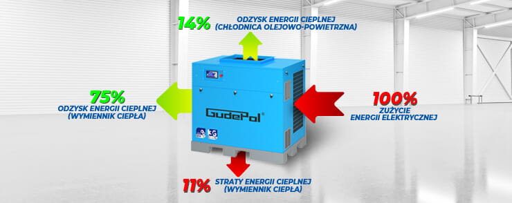 - Możliwość wykorzystania efektywności cieplnej kompresora