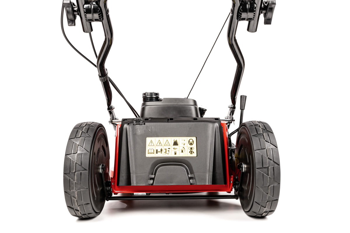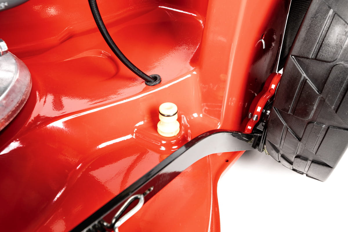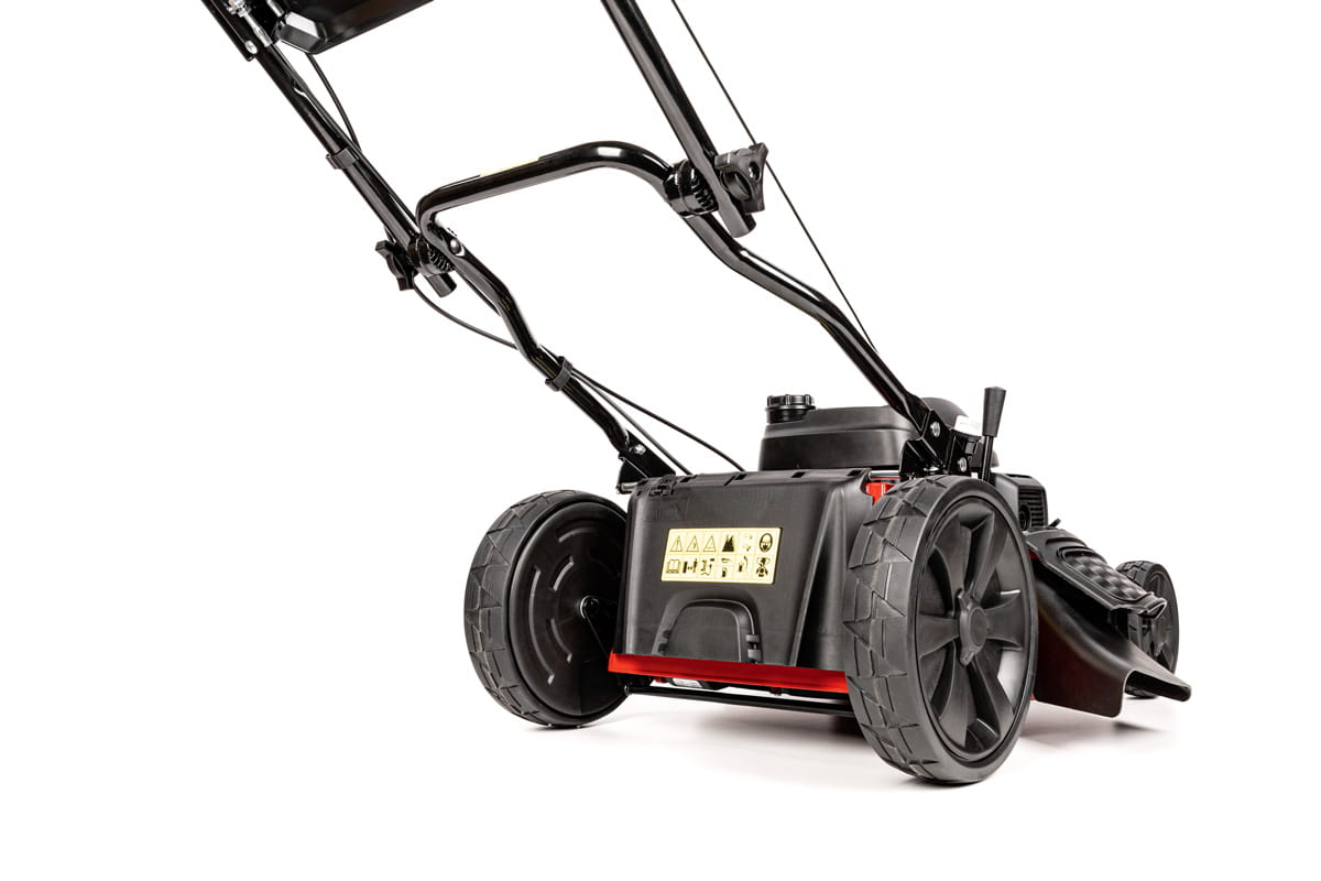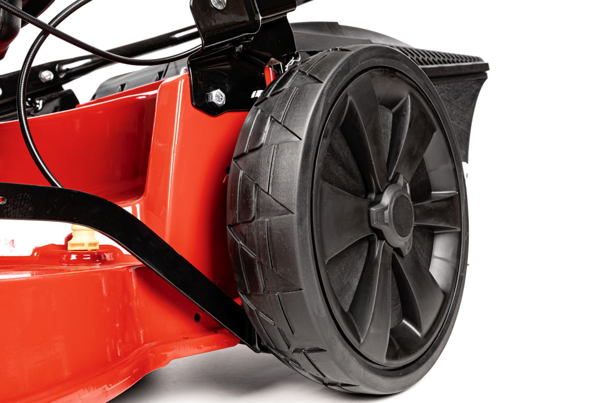 - duże, łożyskowane koła pozwalają łatwo manewrować kosiarką