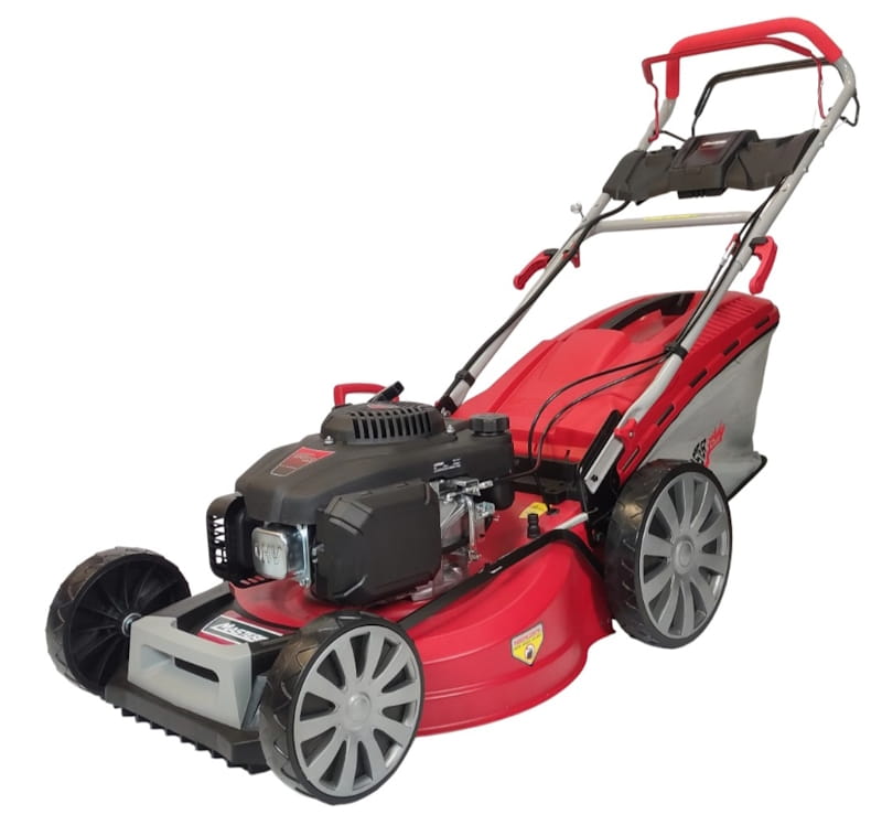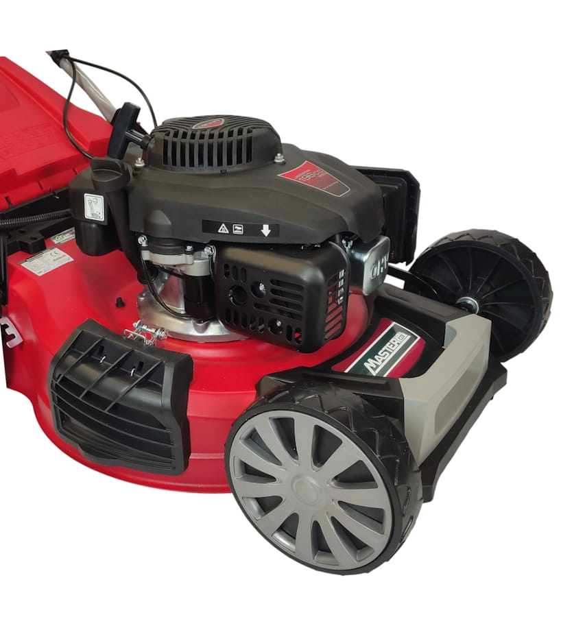 Dodatkowym atutem jest centralna regulacja wysokości koszenia, która ułatwia na sprawne i optymalne dobranie wysokości koszenia do aktualnych potrzeb koszenia. Duże podwójnie łożyskowane koła, z przodu ich średnica wynosi 18cm, a z tył to 27,5 cm. Osadzenie podwozia na dużych kołach daje płynną jazdę nawet przy nierównościach pojawiających się na trawniku. Kosiarka do trawników Mastercut daje kilka możliwości dystrybucji ściętej trawy. Ścięta trawa może być zbierana do kosza, wyrzucana na bok, wyrzucana w tył oraz mielona, na co pozwalają specjalne przystawki będące na wyposażeniu standardowym. Obudowa kosiarki wyposażona jest również w złączkę do mycia podwozia, po zakończonej pracy, wystarczy podpiąć węża z bieżącą wodą, a rozbryzgująca woda w szybki sposób poradzi sobie z pozostałościami po trawie w podwoziu. Poza solidnym silnikiem maszyna wyposażona została w francuską profesjonalna przekładnia napędu marki General Transmissions zapewnia długotrwałe działanie napędu na bardzo wysokim poziomie przez długi czas. Napęd w dowolnym momencie można odłączyć i tym samym zapewnić sobie dużą sprawność manewrowania przy gęściejszych nasadzeniach.
