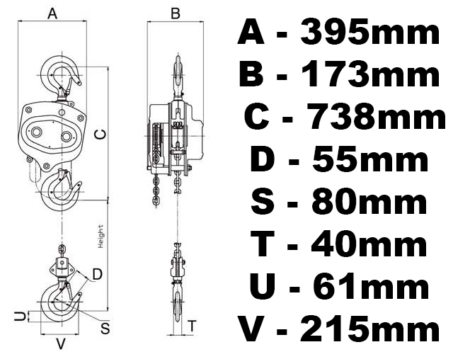 Łańcuchowa wciągarka hakowa 10000kg VIBER-SYSTEM H10000