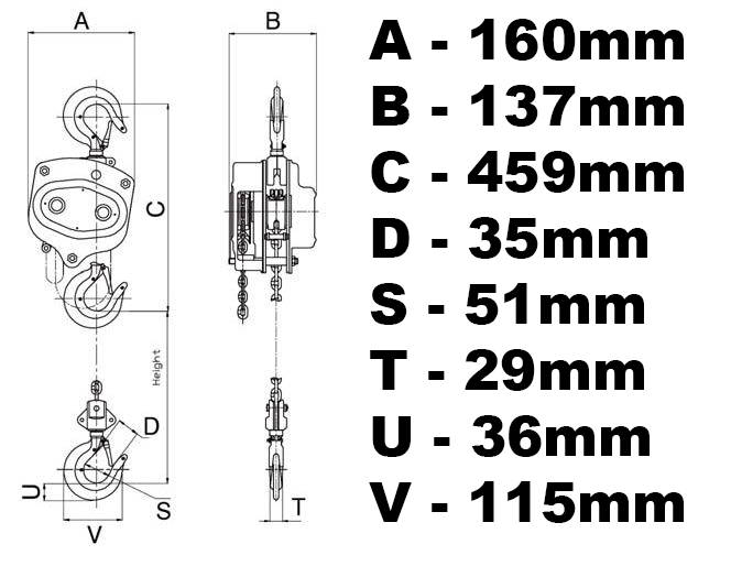 Łańcuchowa wciągarka hakowa 2000kg VIBER-SYSTEM H2000 + GRATISY