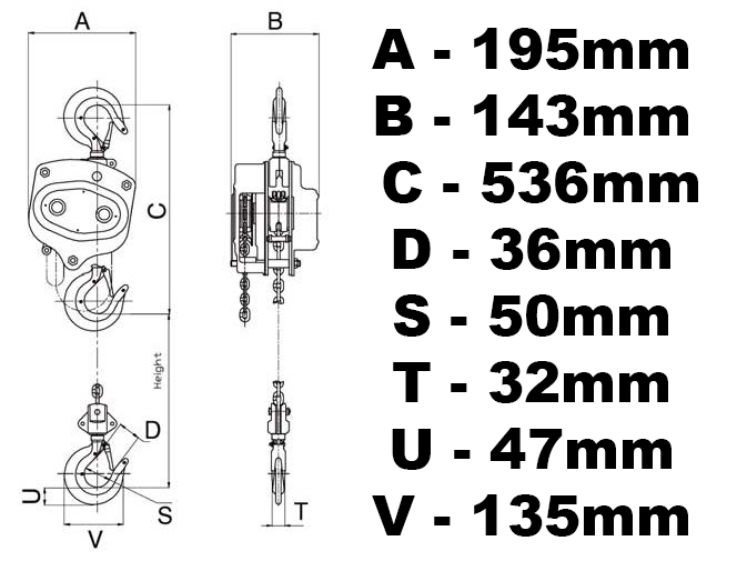 Łańcuchowa wciągarka hakowa 3000kg VIBER-SYSTEM H3000 + GRATISY