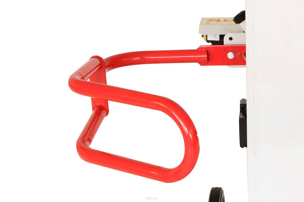 Oprócz standardowego sterowania oburęcznego, łuparka do drewna wyposażona jest w nowe większe ramię bezpieczeństwa i koło transportowe umieszczone w pobliżu uchwytów, co znacznie ułatwia transport łuparki. Lewa dźwignia sterująca wyposażona jest w urządzenie zapewniające stabilność kłody.