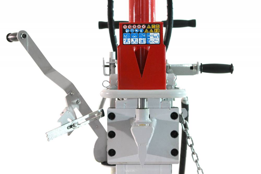 Oprócz standardowego sterowania oburęcznego, łuparka do drewna wyposażona jest w nowe większe ramię bezpieczeństwa i koło transportowe umieszczone w pobliżu uchwytów, co znacznie ułatwia transport łuparki. Lewa dźwignia sterująca wyposażona jest w urządzenie zapewniające stabilność kłody.