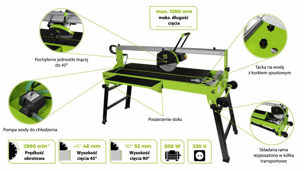 Maszyna, przecinarka do cięcia płytek, glazury, kamienia ZIPPER ZI-FS250-1200 + GRATISY
