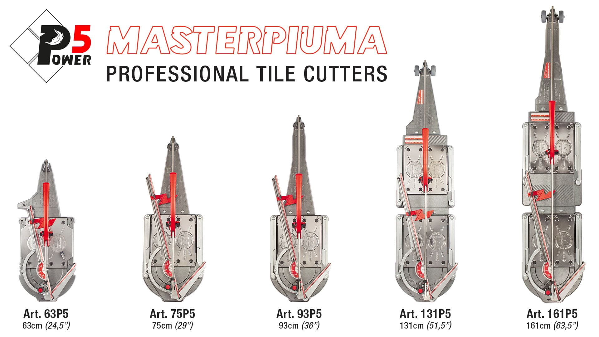 63P5 (cm 63×63), 75P5 (cm75x75) i 93P5 (cm 93×93) oraz zupełnie nowe 131P5 (cm 131×131) i 161P5 (cm 161×161).