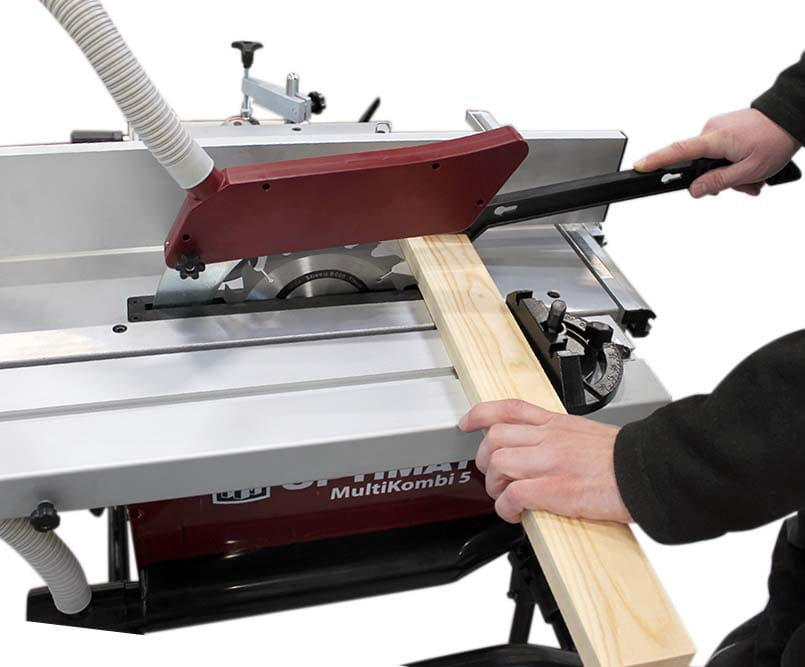 Maszyna OPTIMAT MultiKombi 5 to zaawansowana maszyna wieloczynnościowa łącząca funkcje piły, wyrówniarki, grubościówki, frezarki i wiertarki, dzięki temu zastępuje pięć osobnych urządzeń w niewielkiej przestrzeni roboczej.