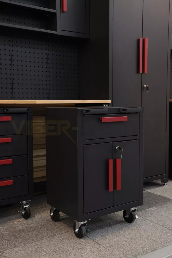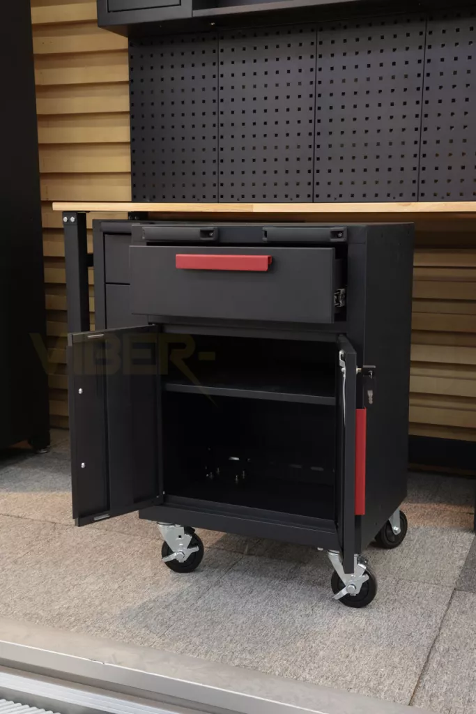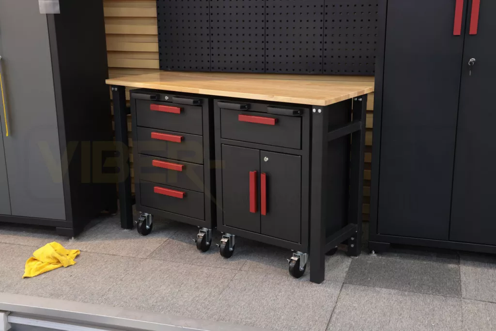 Meble warsztatowe z ruchomym stołem i szafkami jezdnymi, szafa, regał VIBER-SYSTEM SZ101