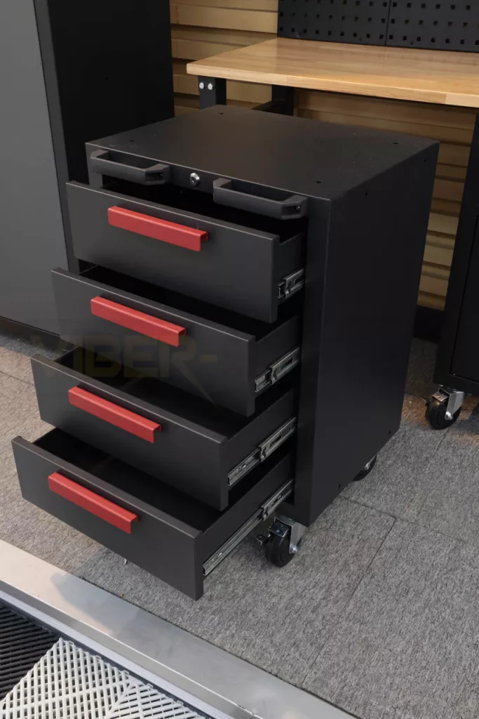 - Ruchomy stół warsztatowy i szafki można przestawiać w dogodne miejsce w zależności od potrzeb.