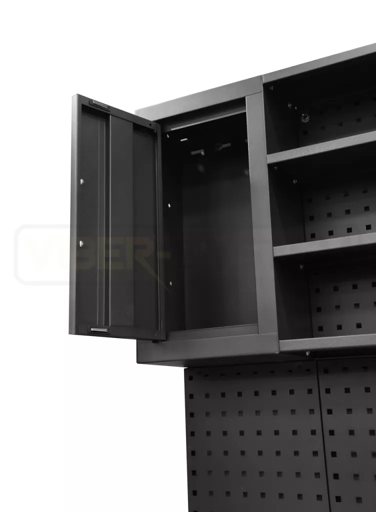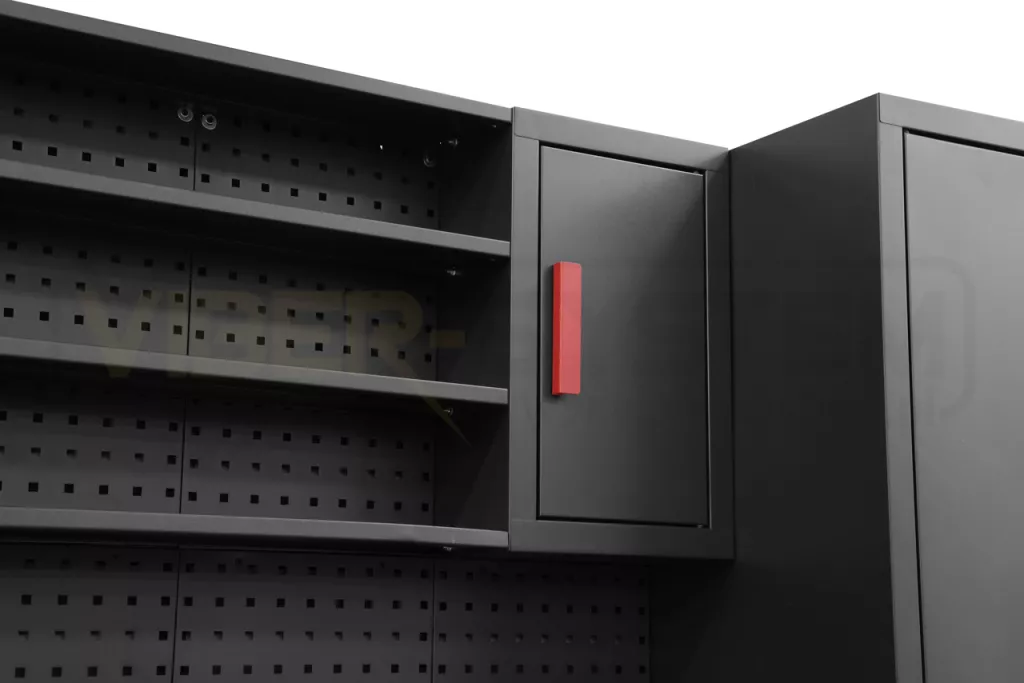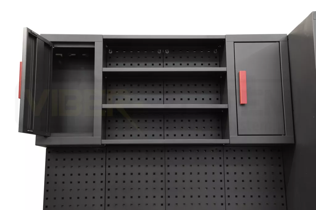- Półki połączone z systemem perforacji dla dodatkowej przestrzeni do przechowywania narzędzi