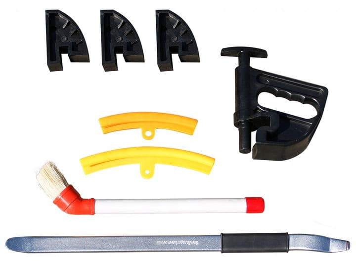 - Nakładki na szczęki z tworzywa sztucznego chroniące przed zarysowaniem felg aluminiowych