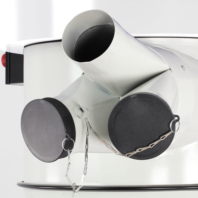 - Dwukrotne odfiltrowywanie pyłów drzewnych i wiórów (cyklon, wkład filtracyjny), mogą także służyć do odsysania tworzyw sztucznych, włókien itp.