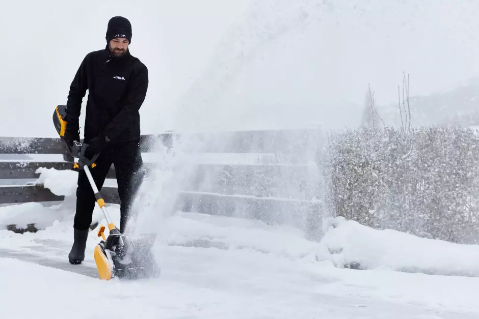 Szufla akumulatorowa w zestawie z akumulatorem o pojemności 2Ah oraz ładowarką w pełni kompatybilną z systemem akumulatorowym Stiga ePower. Odśnieżanie nie powinno być bolesnym zadaniem a wręcz przeciwnie świetną zabawą. Wygodna i komfortowa, akumulatorowa łopata do odśnieżania bezproblemowo usuwa śnieg z podjazdów, tarasów i schodów o głębokości do 15 cm. Włóż baterię do szczelnego gniazda baterii, połóż jedną rękę na miękkim uchwycie z pętlą, naciśnij włącznik/wyłącznik – i zacznij pracę. Teleskopowy trzon umożliwia dostosowanie wysokości łopaty do własnych preferencji, a regulowany kierunek wyrzutu umożliwia zmianę w dowolnym momencie kierunku padania śniegu w odległości do nawet 5 metrów – dzięki czemu możesz pracować bardzo blisko drzwi lub ogrodzenia bez przypadkowego wyrzucania śniegu na werandę lub ogród sąsiada. Zasilany naszą baterią STIGA ePower 48V, osiąga maksymalne rezultaty przy minimalnym hałasie, wibracjach i konserwacji – nawet w niskich temperaturach (do -20°). Kiedy pory roku mijają, używaj tego samego akumulatora do zasilania narzędzi ogrodniczych STIGA serii 500 i 700. Z łatwością przechowuj swoją akumulatorową szuflę do śniegu dzięki kompaktowej i lekkiej konstrukcji. Kompatybilna z akumulatorami E 420 AE, E 440 AE, E 450 AE. 1x Akumulatora E 420 i ładowarka pojedyncza w zestawie. Czas pracy: 19 min dla akumulatora 2 Ah, 38 min dla akumulatora 4 Ah, 47 min dla akumulatora 5 Ah