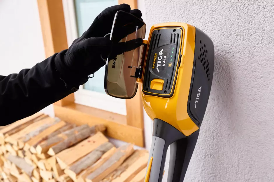 - Akumulator dzięki specjalnej pokrywie jest w pełni bezpieczny podczas zimowych prac