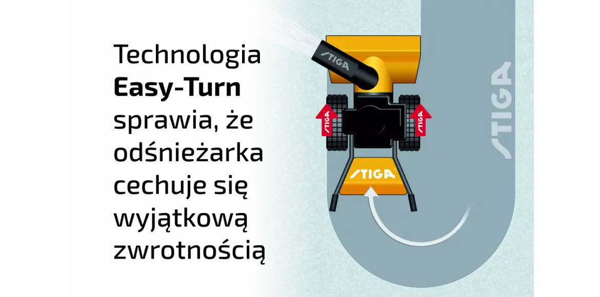 - Technologia Easy-Turn - sprawia, że odśnieżarka cechuje się wyjątkową zwrotnością.