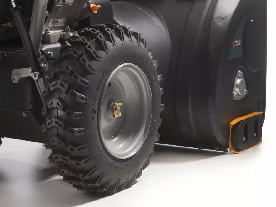 Przeznaczona do odśnieżania średnich i dużych obszarów. STIGA ST 5266 P to niezawodna i skuteczna dwustopniowa odśnieżarka z silnikiem spalinowym STIGA WS 300 o pojemności 302 cm3 i ślimakiem zębatym 66 cm. Odśnieżarka ST 5266 P poradzi sobie praktycznie z każdym rodzajem śniegu i wyrzuca go na odległość do 12 metrów. Ten pług śnieżny z odwracalnymi płozami i 16-calowymi oponami Snow Hog zapewnia optymalną przyczepność przy sześciu prędkościach. Nowy napęd z technologią Easy-Turn do automatycznego zwalniania blokady mechanizmu różnicowego sprawia, że ST 5266 P jest wyjątkowo zwrotna. To urządzenie zostało zaprojektowane z myślą o obsłudze nawet w najbardziej wymagających warunkach dzięki specjalnym reflektorom LED, podgrzewanym uchwycie i rozrusznikowi elektrycznemu 230 V. Wszystkie elementy sterujące są wygodnie umieszczone na panelu sterowania.
