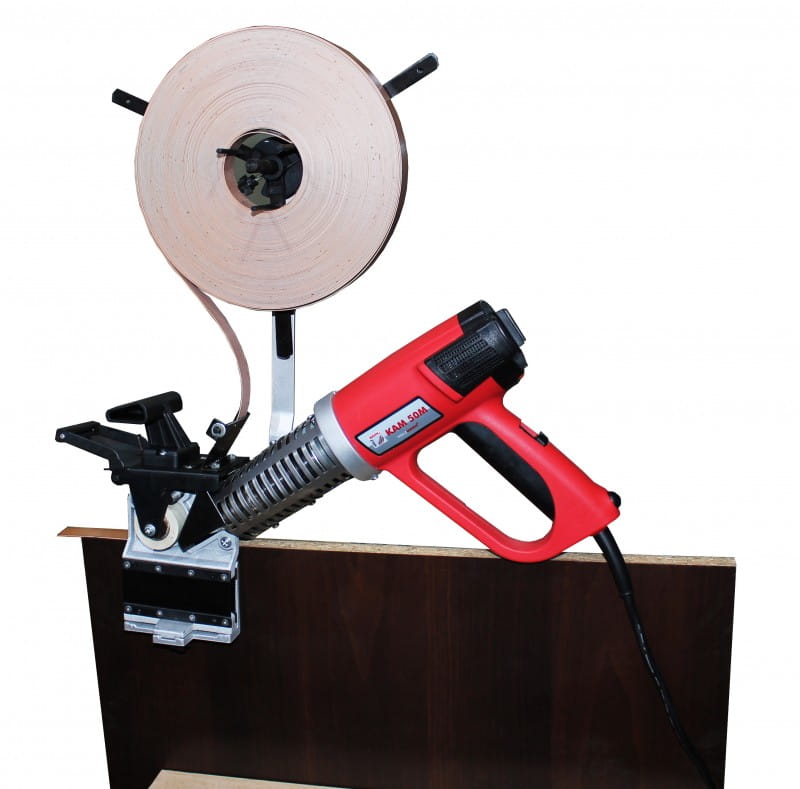 Znajduje zastosowanie przy oklejaniu krawędzi materiałów, regulowana szczęka prowadnicy, przeznaczona dla prostych i zakrzywionych materiałów, bardzo precyzyjny aluminiowy odlew.
