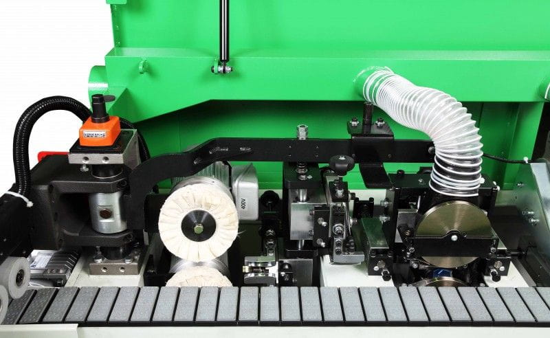 - Jednostka polerująca- jednostka ta pozostawia doskonałe wykończenie na obrzeżach ABS i PCV i usuwa wszelkie odbarwienia na krawędziach, co jest szczególnie widoczne podczas pracy z ciemnym materiałem na krawędziach.