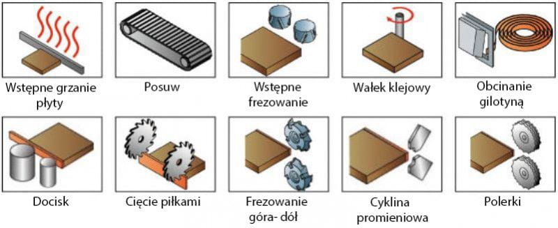 - Cyklina promieniowa precyzyjnie dostraja promień krawędzi i usuwa nadmiar kleju.