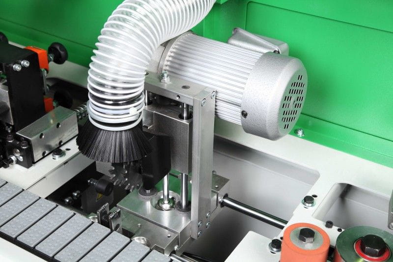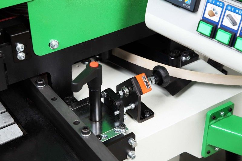 - Rolka dociskowa- jednostka rolki dociskowej poprawia wiązanie pomiędzy krawędzią, a materiałem. Jednostka jest mechanicznie dociskana sprężyną, odpowiednia do systemu konfiguracji oraz można dostosować ją dokładnie do wymaganej grubości krawędzi.