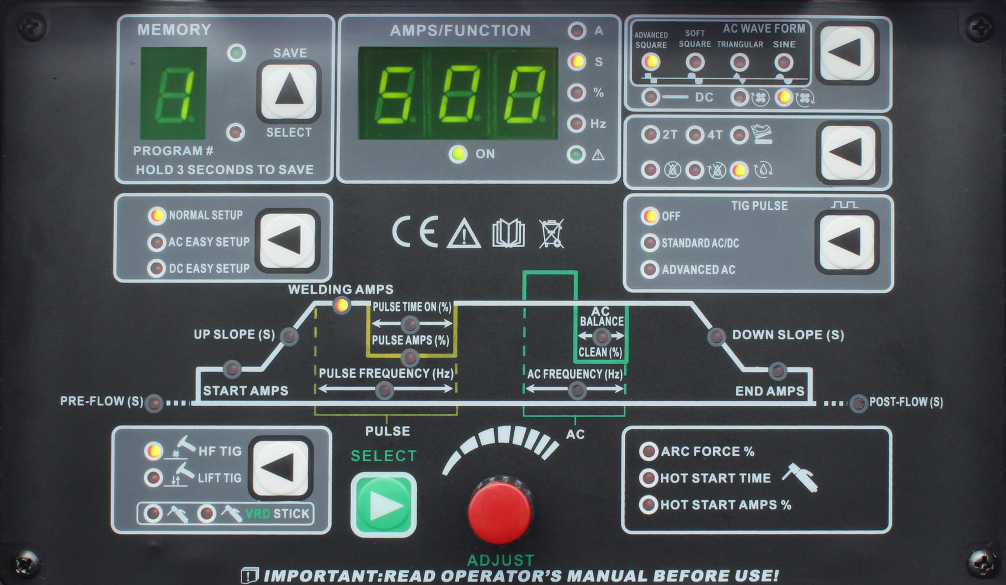 - NORMAL SETUP - parametry spawania nastawiane wg indywidualnych potrzeb.