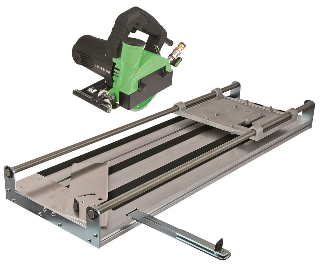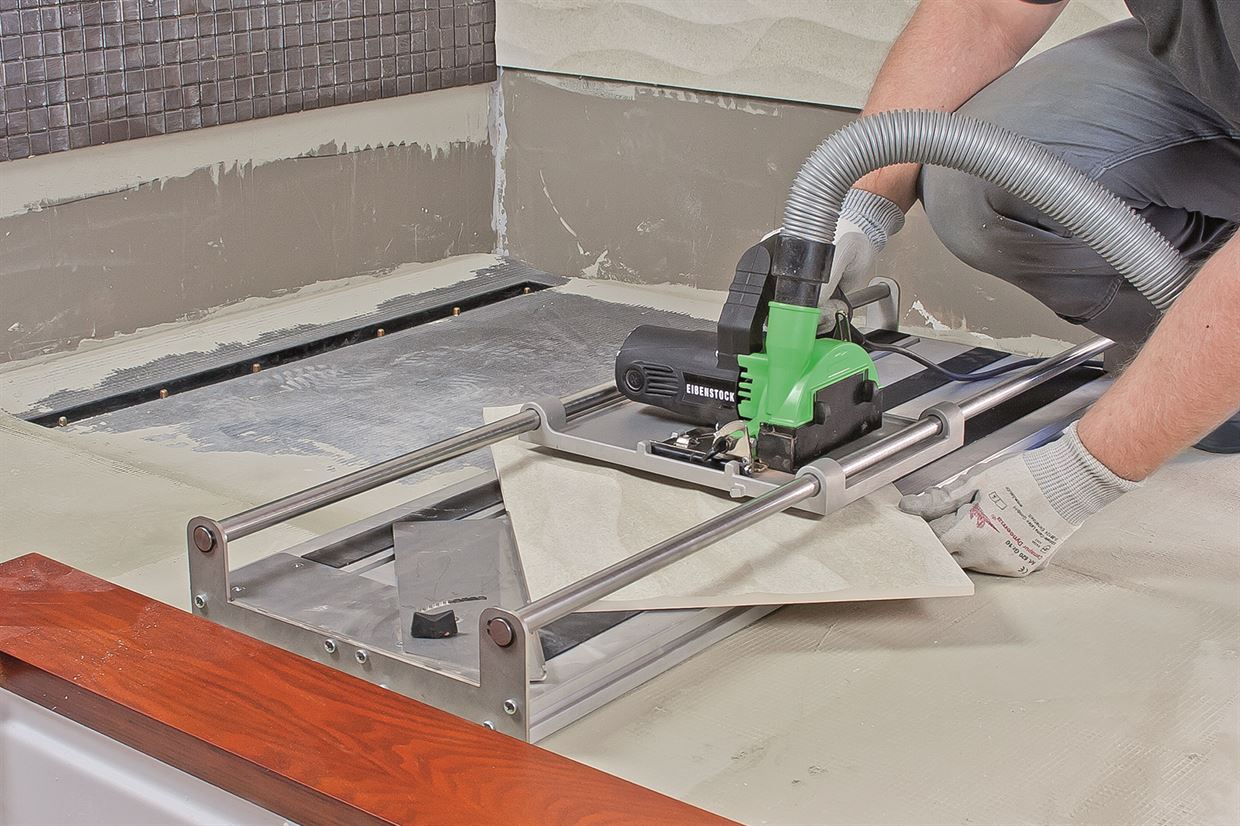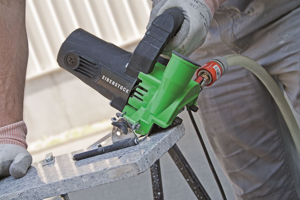 - Zintegrowane podawanie wody z regulatorem przepływu – łatwa regulacja ilości wody, brak kurzu podczas cięcia na mokro