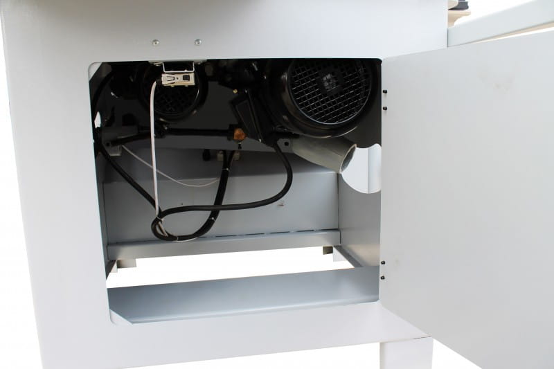 - Podwójnie prowadzony wózek aluminiowy stołu z twardymi prowadnicami na prętach z hartowanej stali w rezultacie pozwala na wysoką precyzję wykonywanych prac