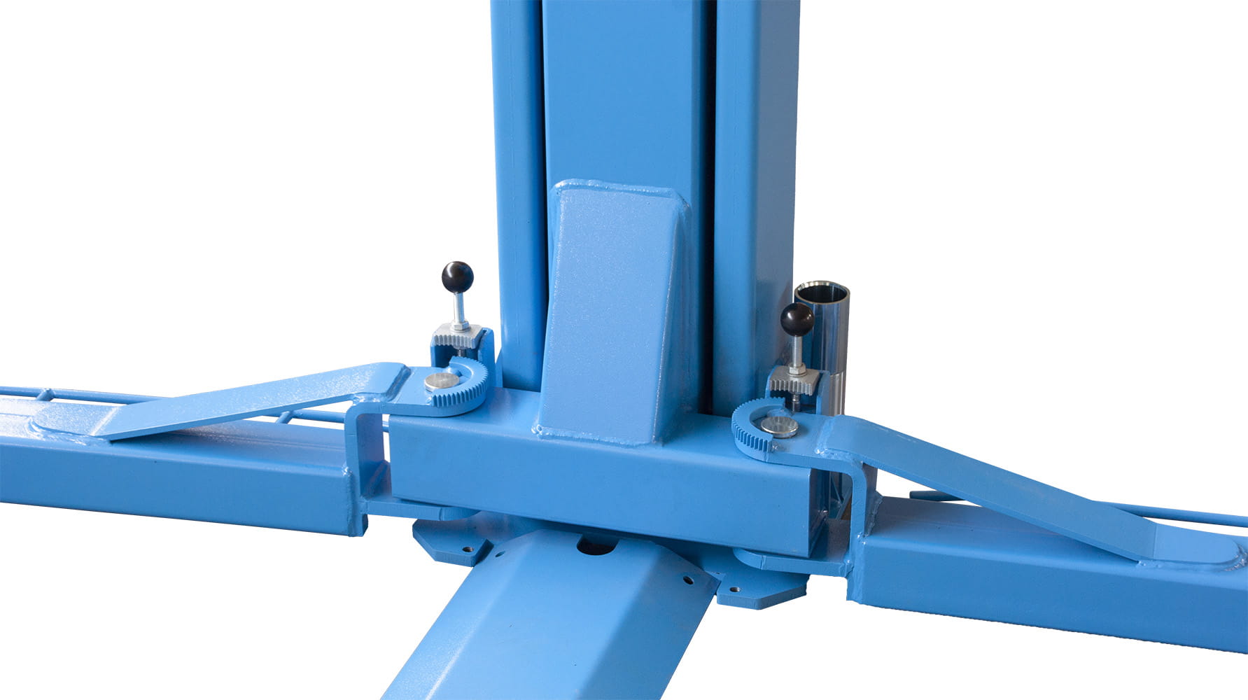 Stabilność podnośnika i unoszonego pojazdu gwarantuje wzmocniona konstrukcja elementów nośnych Zastrzały boczne ramy również mają znaczący wpływ na stabilność układu za sprawą zwiększenia powierzchni styku podnośnika z podłożem i optymalizują rozkład masy unoszonego pojazdu.