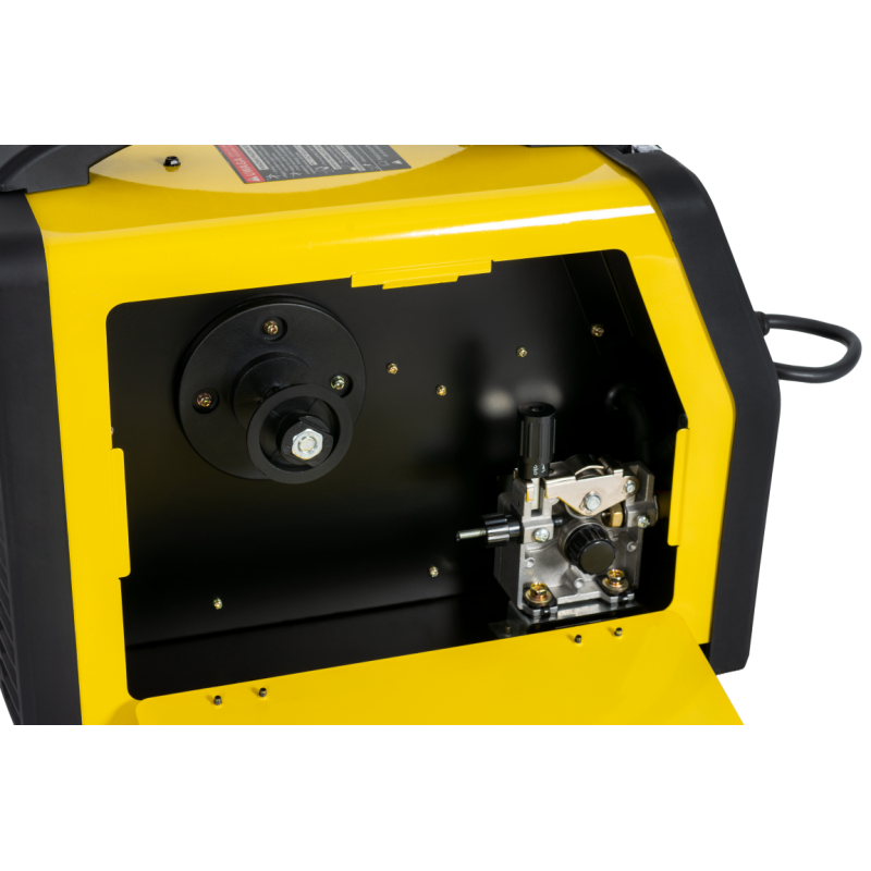 Urządzenie posiada płynną regulacje parametrów spawania, wyposażone jest w przeciążeniowy układ zabezpieczenia termicznego, zapobiegający nadmiernemu przegrzewaniu się. Zastosowany w urządzeniu 2-rolkowy podajnik drutu z gniazdem "euro złącze" pozwala na podłączenie różnych typów uchwytów spawalniczych.